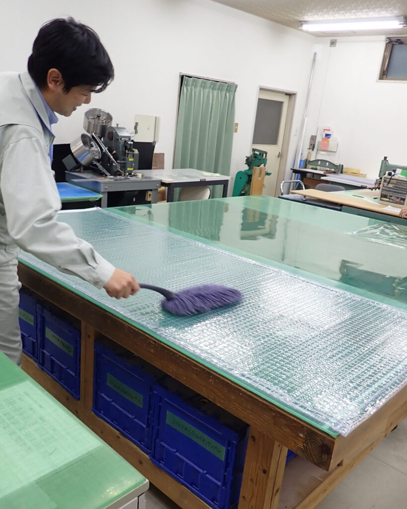 これもいつも通りの作業ですが、モップでクリーニングして、加工中の粉などを拭き取ってきれいな状態でお客様にお届けしています。